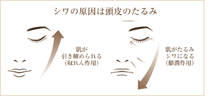 ですから顔の皮膚だけを引きしめても、頭皮がたるんでいれば当然顔の部分にも影響を与えてきます。
